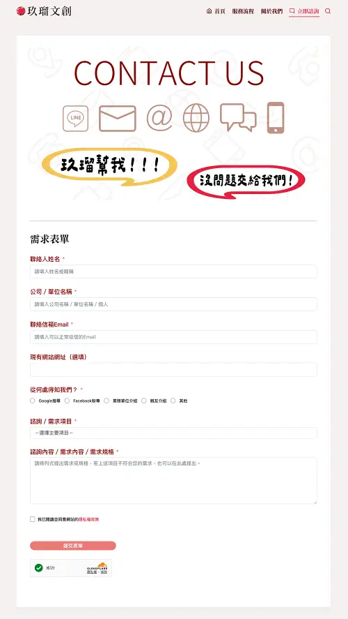 • 依照需求設計諮詢表單,並列出各種細項,同時保留客戶自行填寫訊息欄位。
