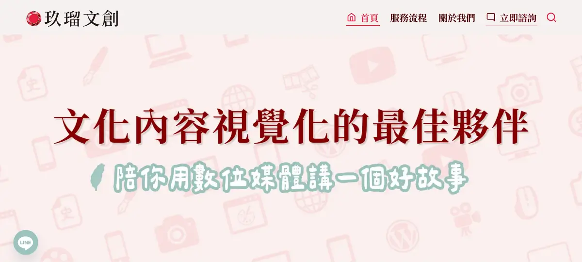 利用靜態首頁,讓訪客第一眼就能看到我們的主、副 Slogan,同時依照需求在視窗左側加入官方 LINE 浮動按鈕,避免擋住「返回頂部」按鈕,也方便訪客聯繫。